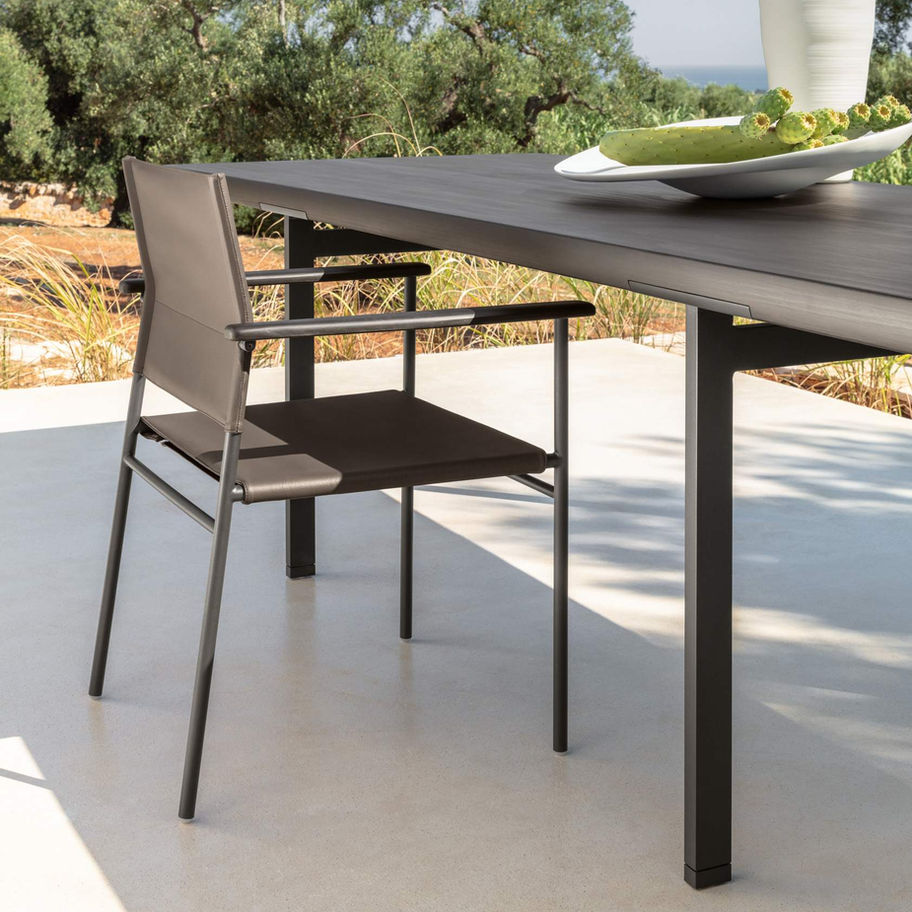 Designed by Christophe Pillet, the Allure Dining Chair embodies the collection’s signature blend of elegant geometry and refined informality. Its slim steel frame is paired with warm wooden armrests; creating a sophisticated balance of strength and lightness. The seat and backrest are upholstered in premium faux leather or fabric, with optional quick-dry foam cushions for added comfort. Lightweight yet durable at just 4.5 kg, the chair features precise proportions that make it equally suited for intimate terraces or expansive dining spaces. Weather-resistant, easy to care for, and proudly Made in Italy, the Allure Dining Chair transforms outdoor dining into an experience of timeless style and relaxed sophistication.