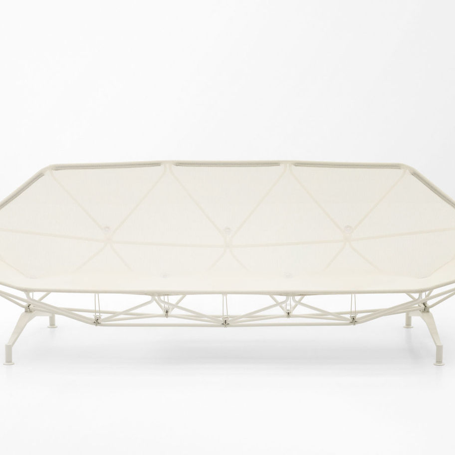 Designed by Francisco Gomez Paz, the Alma sofa is a study in sculptural lightness, sustainability, and versatility. Available in both two- and three-seat versions, Alma features a precision-engineered AISI 316 stainless-steel frame, wrapped in breathable Rete fabric in Ivory or Graphite. Comfort comes from seat and back cushions made with recycled, biodegradable polyester fibre, and fixed to the frame via discreet fibreglass rods. Alma’s design is as eco-minded as it is aesthetic; eliminating polyurethane in favour of fully recyclable padding and using advanced CNC fabrication techniques for precision and reduced material waste.