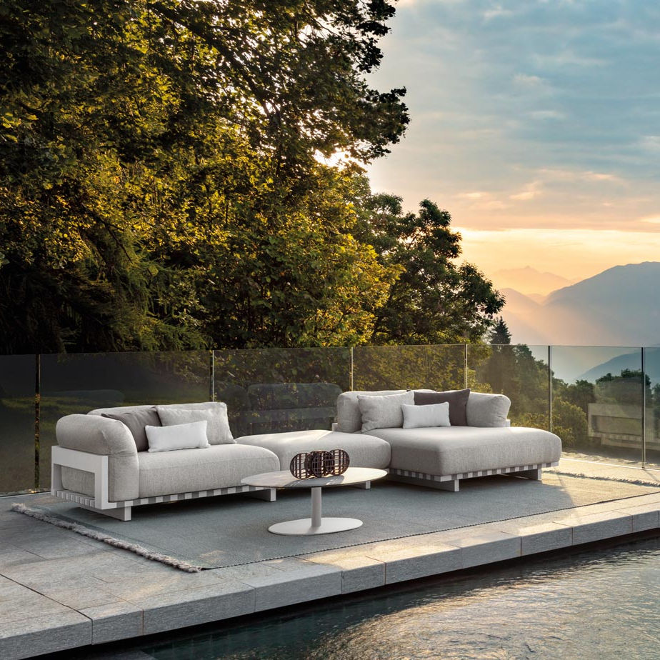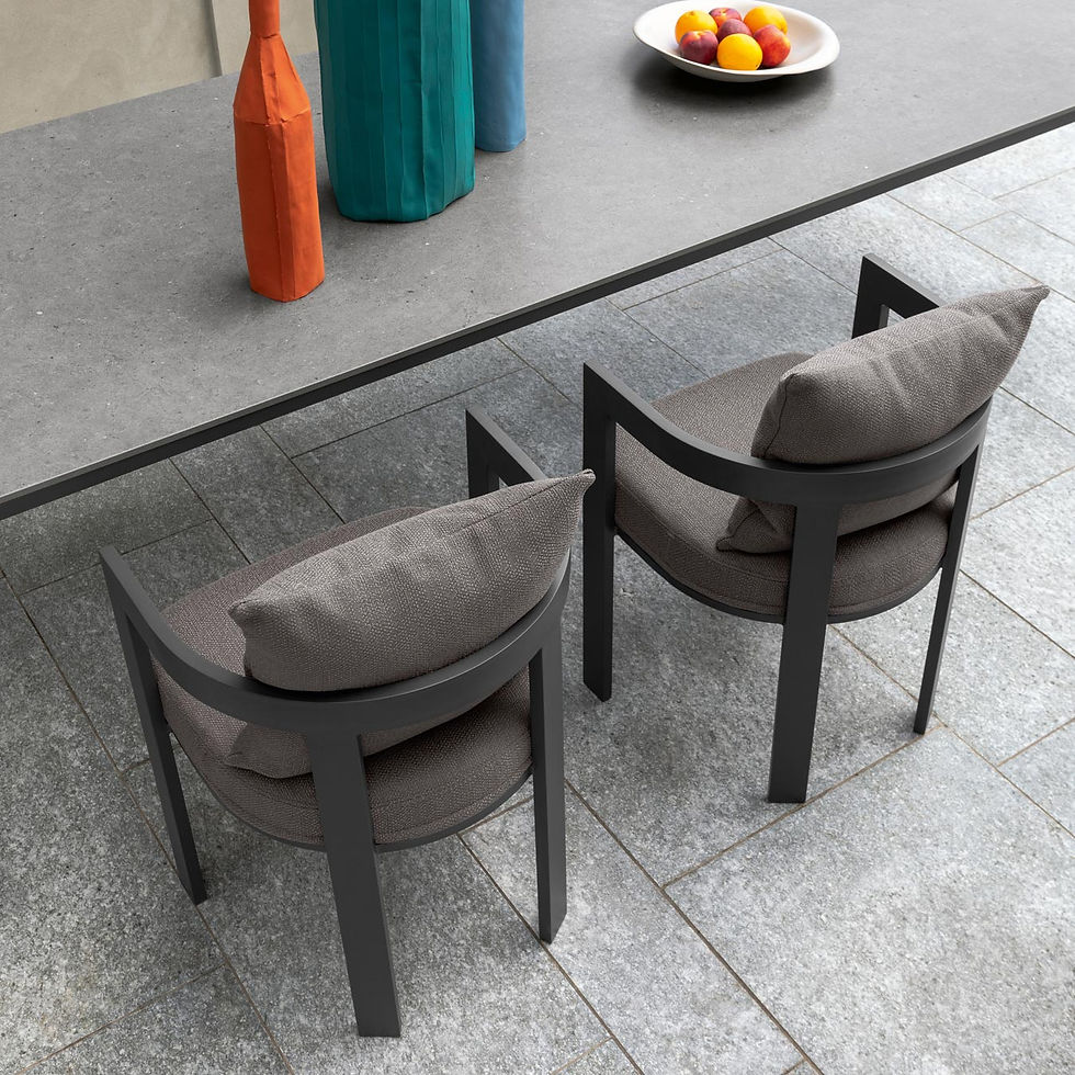 The Argo Alu Dining Table, conceived by the renowned design duo Ludovica and Roberto Palomba, exemplifies the pinnacle of Italian craftsmanship and contemporary outdoor elegance. Its solid aluminum frame provides a sturdy yet lightweight foundation. The table's top is crafted from gres porcellanato (porcelain stoneware), offering durability and a sophisticated appearance. Dimensions vary across models, with the largest accommodating up to 10 guests.