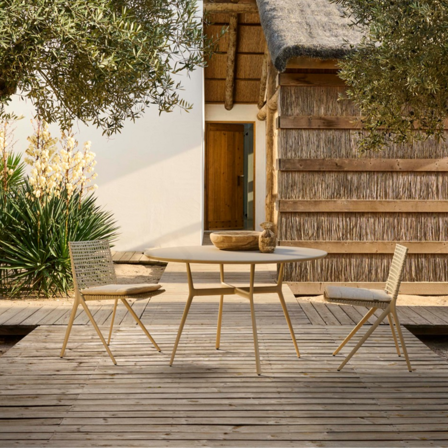Inspired by the branches of a tree, the Branch collection has a sleek, organic look. Behind the refined look lies a sophisticated design and a well-considered choice for durable, easy-to-maintain, recyclable materials. The aluminium die-cast frame is powdercoated with a double layer for a superior scratch and uv-resistance. The table top is available in aluminium or teak from sustainably managed plantations in Indonesia. The Branch Bistro Table is available as a round table or as a square model.