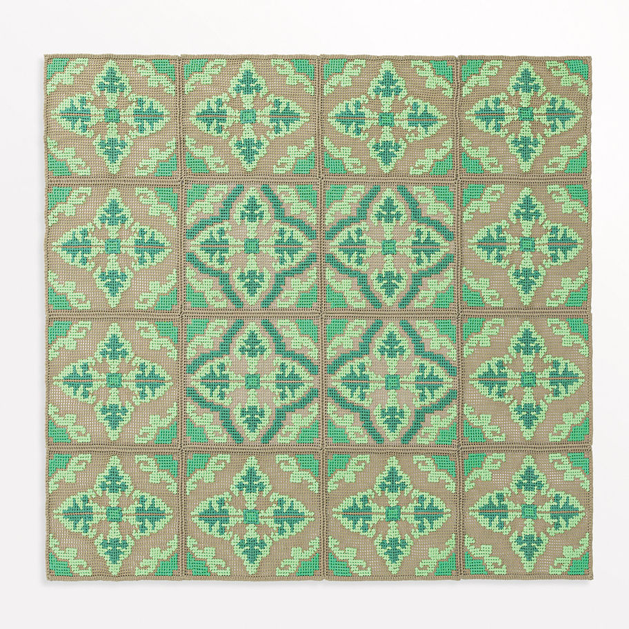 The Donna Florio Rug is a compelling fusion of artisanal detail and modular flexibility. At its foundation lies a grid of 50 × 50 cm Kimia fabric modules in elegant sand; a durable, polyolefin PU-coated textile that ensures longevity and subtle textural softness. Each module is meticulously embellished by hand, using flat Rope yarn embroidery. Two distinct patterns are featured, one reserved for the central field and another for the border, infusing the rug with geometric rhythm and layered depth. These handcrafted squares are then precisely joined with matching Rope yarn ribbon, creating a seamless, expressive surface that also allows glimpses of the ground below through the slight spacing between modules. Customization is woven into the design: up to three colors of Rope embroidery can be selected, enabling a tailored palette that complements the overall tone and mood of the space.