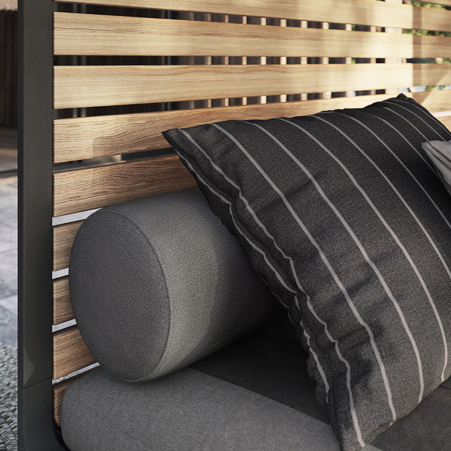 From sunset to nightfall, the Grid Cabana creates a private, luxurious space to unwind. It features a sleek powder-coated aluminum frame and your choice of slatted teak or aluminum panels, combining durability with modern design. Deep outdoor cushions with striped fabrics and oversized pillows offer exceptional comfort, while a built-in shelf keeps your personal items close at hand. The cabana comes complete with seat cushions, protective covers, and the full frame with roof and back panel. Matching back cushions and sling fabric privacy screens are also available as optional accessories.