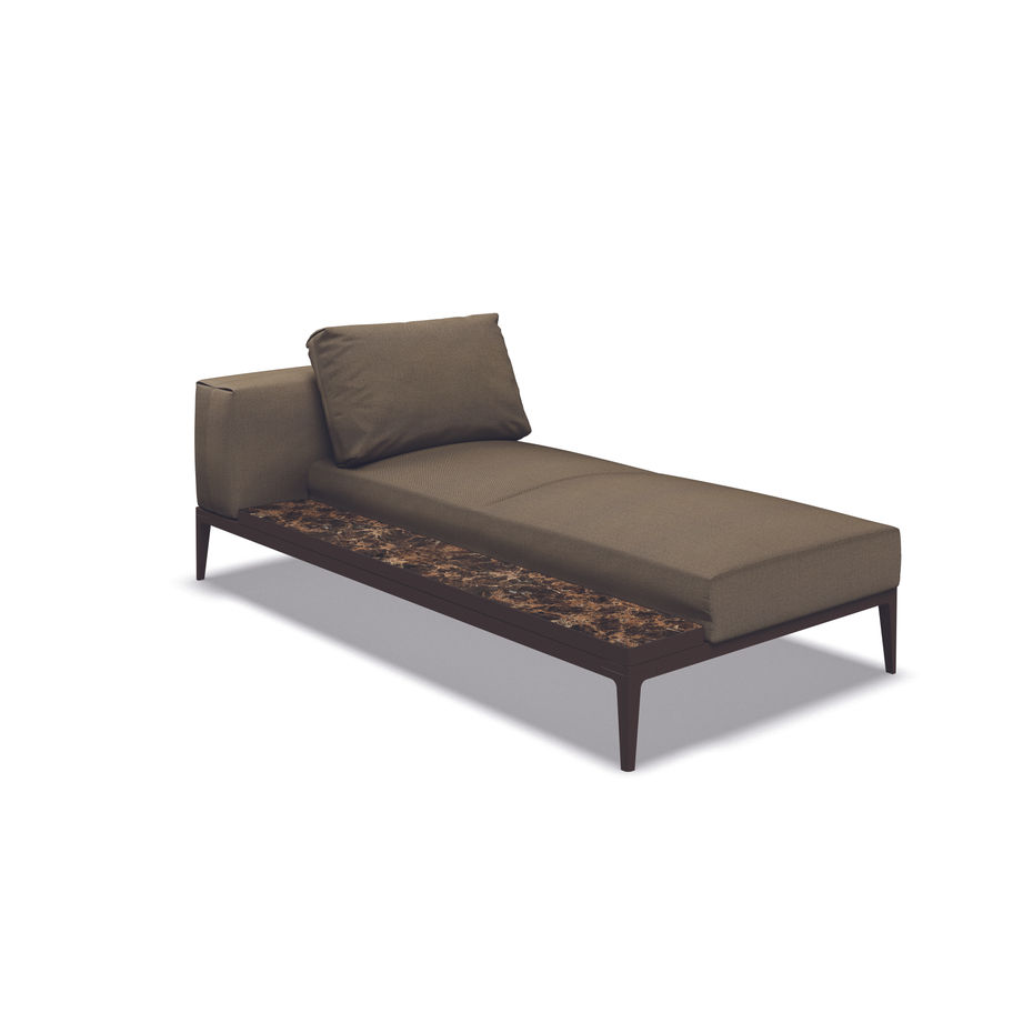 Part of the Grid collection, the Chaise Longue features a powder-coated aluminium frame paired with a natural finish teak or ceramic platform. Combining clean lines with durable materials, it offers a sleek, architectural presence ideal for both indoor and outdoor living. Designed for ultimate comfort and versatility, the chaise can be enjoyed solo or seamlessly integrated with other Grid pieces to create a cohesive, stylish seating arrangement.