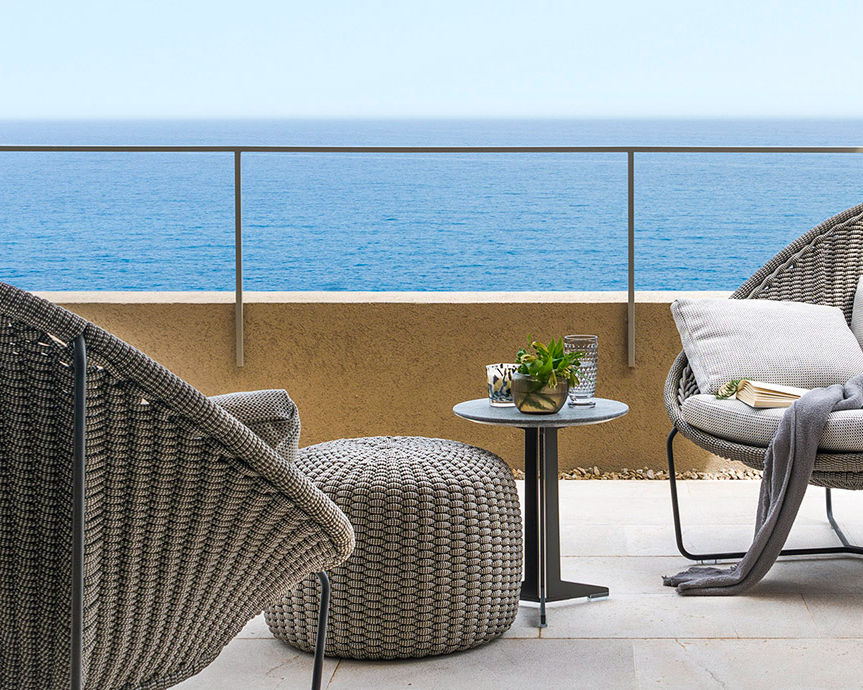 The Nido Pouf is hand-woven in rope yarn, which features a rounded, semi-enclosed form that evokes the comfort and intimacy of a cocoon. The frame is built from crush-proof expanded polyurethane with internal panels and spacers for long-lasting structure. Lightweight and easy to reposition, the Nido can act as a standalone accent or complement a broader seating landscape.