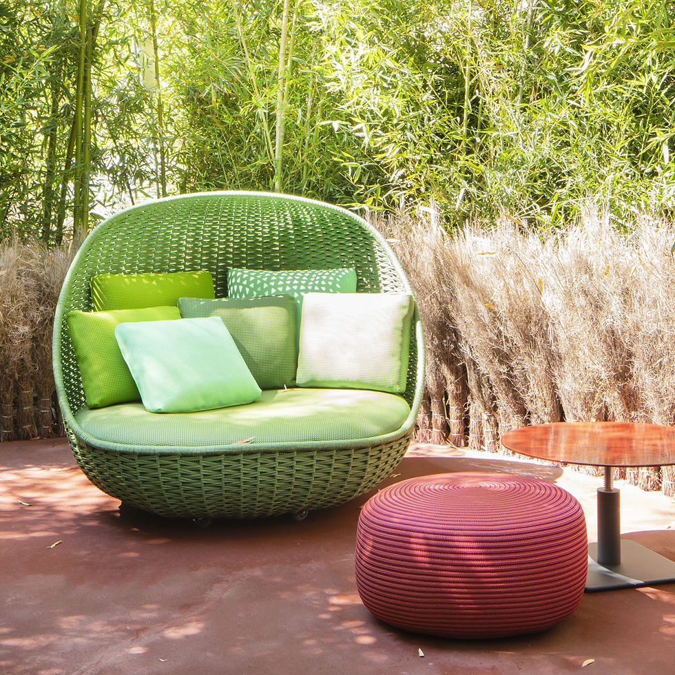 Designed by Víctor Carrasco, the Orbitry Suspended Seat is a striking fusion of lightness and strength. Its structure features a handwoven flat braid of Rope yarn stretched over a robust AISI 316 stainless steel frame, delivering both durability and an airy, sculptural aesthetic. The seat is suspended by multithread stainless steel cables, also wrapped in Rope yarn, creating a seamless visual flow that balances solidity with elegance. Comfort is key in the design, with a removable cushion filled with polyester fiber and a stress-resistant polyurethane insert, upholstered in waterproof polyester for resilience against the elements.