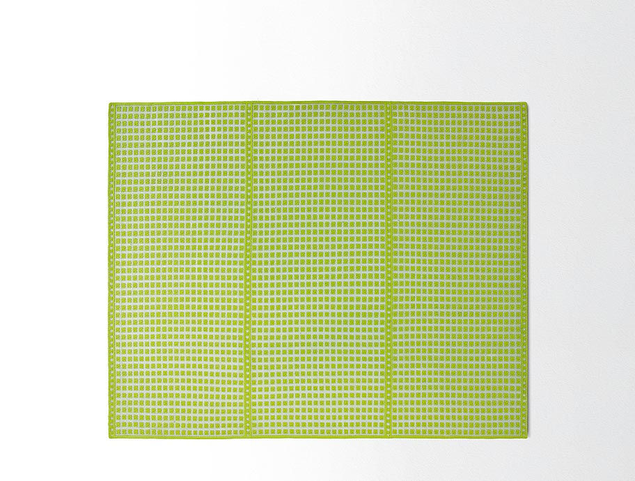 The Orto Rug features a lightweight support net in Kimia fabric, serving as a delicate canvas through which the underlying floor peeks, creating an airy latticework effect. Meticulously embroidered by hand using one or two-colour flat Rope braids in polyolefin, each motif adds texture and dimension, while maintaining visual harmony with its monochromatic palette.