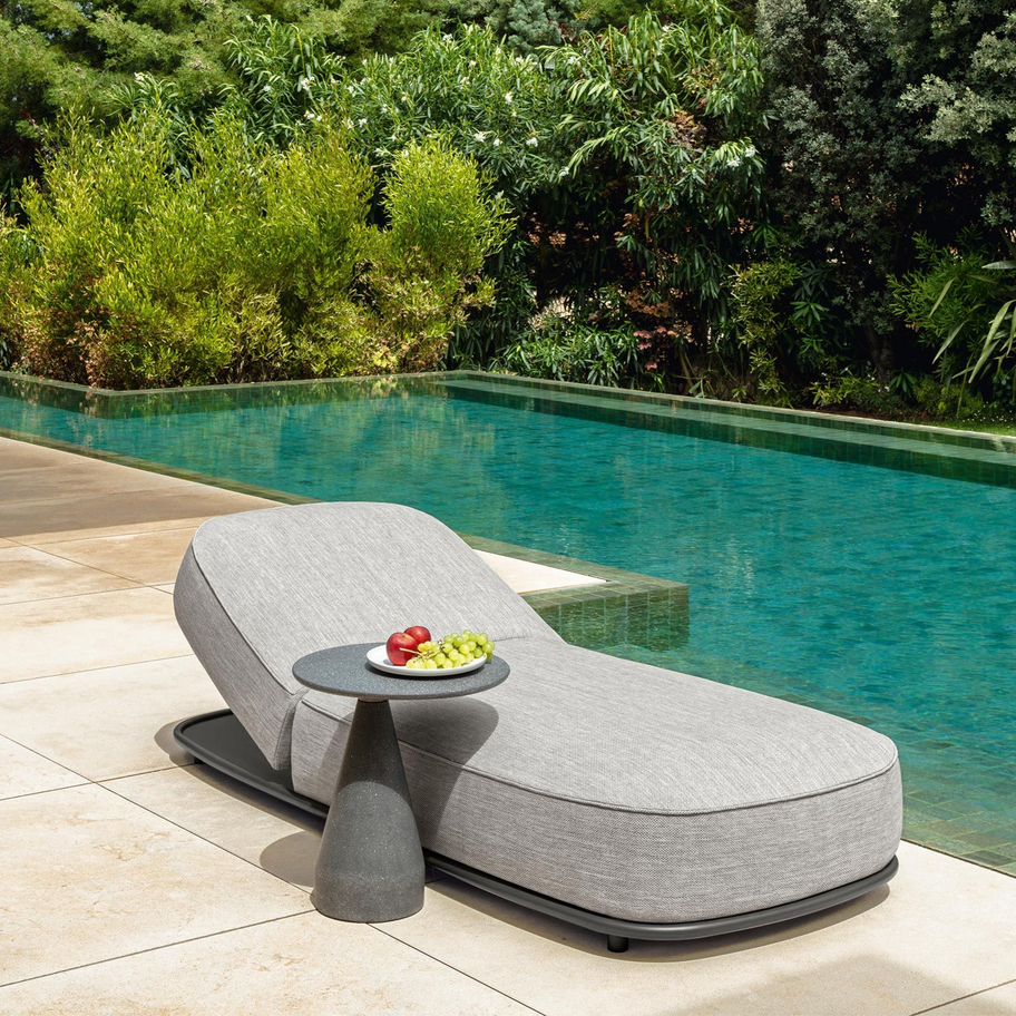 Designed by Marco Acerbis, its silhouette exudes graceful minimalism: a gently tapering, conical base rises to meet a perfectly proportioned circular or oval top, evoking a sense of serene balance. Crafted in two distinct material palettes, the Plaza table delivers a choice of tactile and visual experience: one version in elegantly weather‑resistant concrete with a softly textured matte finish, and the other in a high‑gloss lacquered fibreglass shell, lending a contemporary sheen and lighter weight to the design. What truly distinguishes this piece is how it marries a sculptural, almost artistic presence with everyday functionality. It’s not just a surface for your drinks or books; it acts as a design anchor in the space.