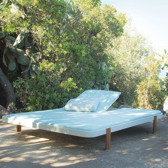 By Víctor Carrasco, the Rams Sunbed is available in single or double formats. It features a sleek powder or gloss varnished aluminium frame, optionally topped with warm teak‑covered legs for added visual contrast. Comfort is engineered through a three‑position adjustable backrest (plus flat), supported by a breathable polyester net seating surface. A plush seat pad of expanded polyurethane, covered in water‑repellent polyester, and an optional loose back cushion provides layered softness. Despite its slender form, it remains stackable; perfect for compact storage in hospitality or home settings. A proud recipient of the German Design Award 2016 in the Excellent Product Design category, the Rams pairs articulate engineering with understated elegance.
